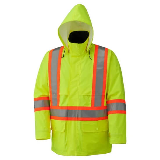 Áo phản quang giá rẻ được làm bằng chất liệu vải PU dày, chống thấm nước, độ bền cao, chuyên sử dụng trong môi trường có độ ẩm cao vì nó có tác dụng thoáng khí. Được sử dụng trong các ngành nghề như để bảo hộ lao động như: lính cứu hỏa, công nhân làm đường, công nhân hầm mỏ, lao công, đường sắt, hàng không,…