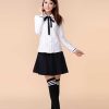 - Thiết kế: kiểu áo sơ mi cổ thắt nơ đen