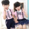 - Thiết kế: kiểu áo thun cách điệu cho nữ và áo polo nam đi cùng quần sọc cho nam và váy tầng cho nữ